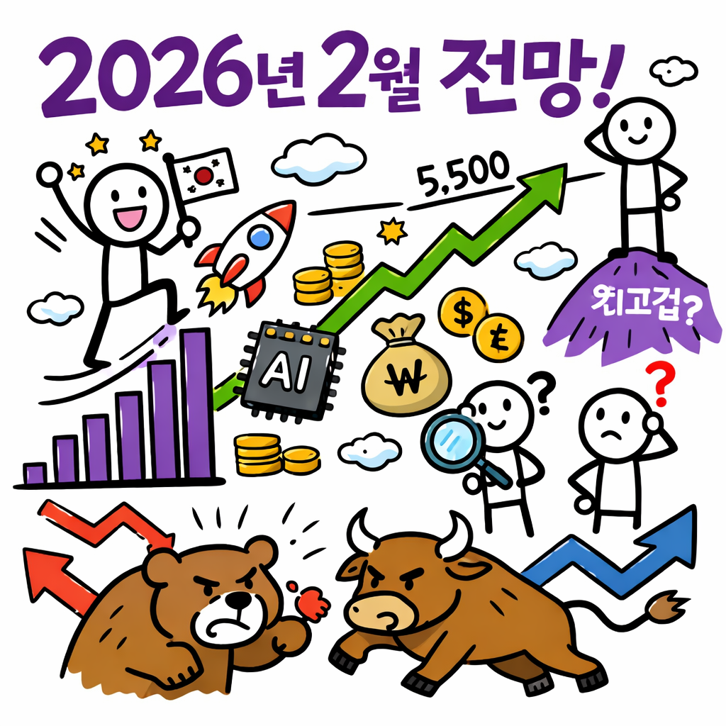 거래대금도 ‘확’ 살아나면서 시장 온도가 체감으로도 달라졌고요. 다만 이런 국면일수록 중요한 건 “더 오르나?”보다 “지금 어디쯤 와 있고, 어떤 조건이 깨지면 흐름이 바뀌는가?”입니다. 오늘은 숫자·수급·금리·업황을 기준으로 2026년 2월 한국 주가 상황을 정리하고, 향후 시나리오를 전문가 관점으로 깔끔하게 그려보겠습니다.